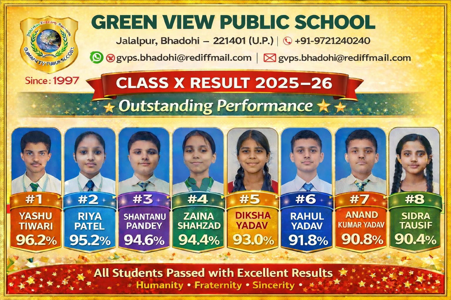 At Green View Public School, we believe that true education shapes character as much as it builds knowledge. Our endeavour is to create an environment where students learn to think critically, respect others and take responsibility for their actions.