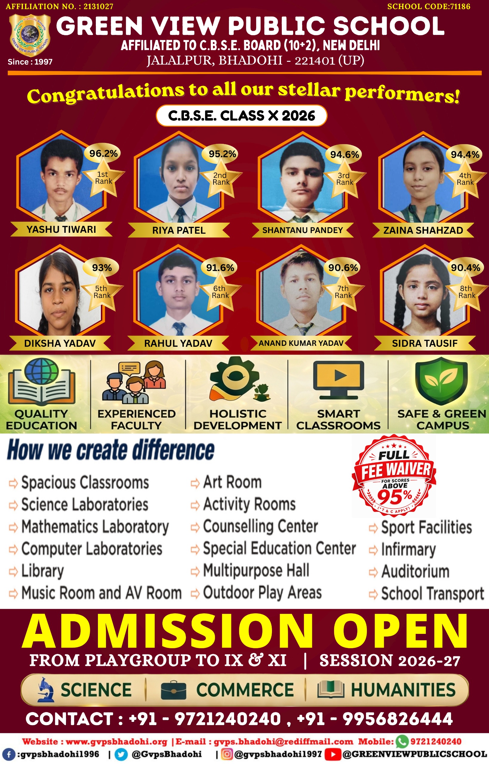 CBSE-affiliated English medium school in Jalalpur, Bhadohi, committed to academic excellence and holistic development for more than 25 years.
